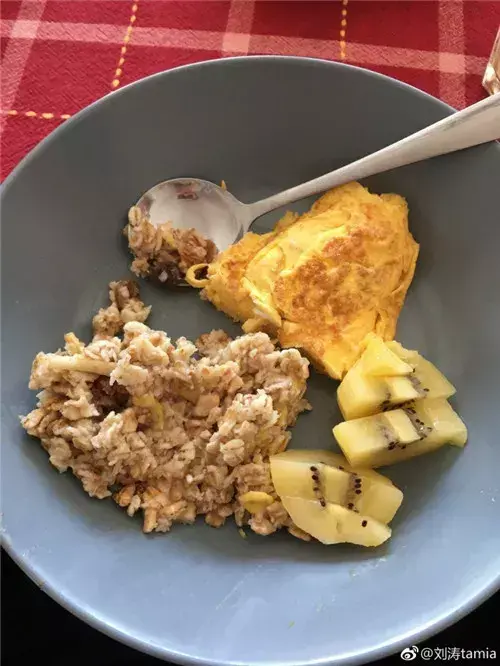 有时刘涛还会加一杯咖啡来提神,开启活力满满的一天,咖啡因可以加强新陈代谢,让脂肪燃烧的更快。