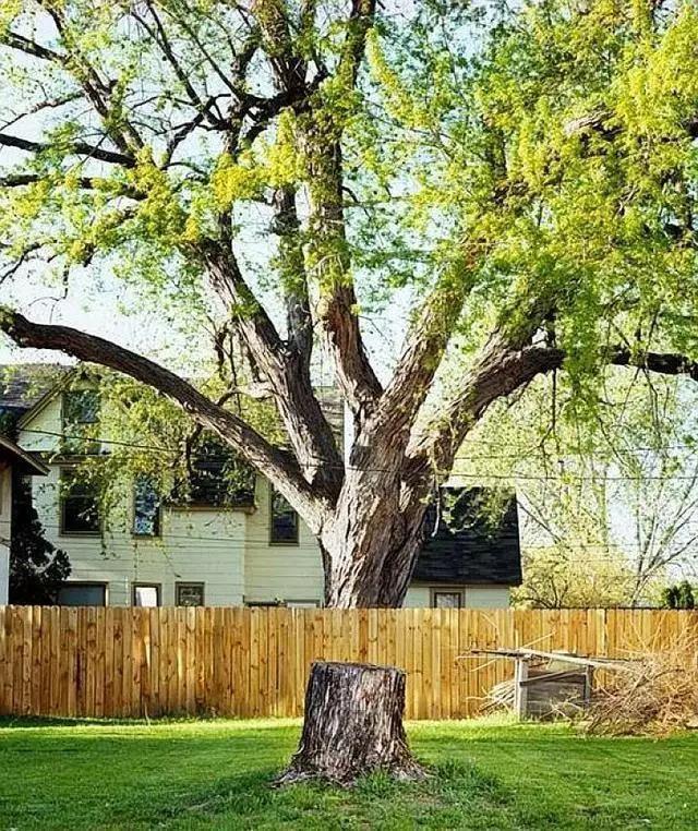 其实这是两棵树,院子外的大树已经被砍掉了。
