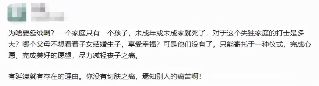 事发后,网络一片哗然,很多年轻网友甚至头一次听说“配阴婚”这么阴间的事儿,还有网友表示只看过网络小说杜撰的情节,没想到现实中竟然真的发生了。