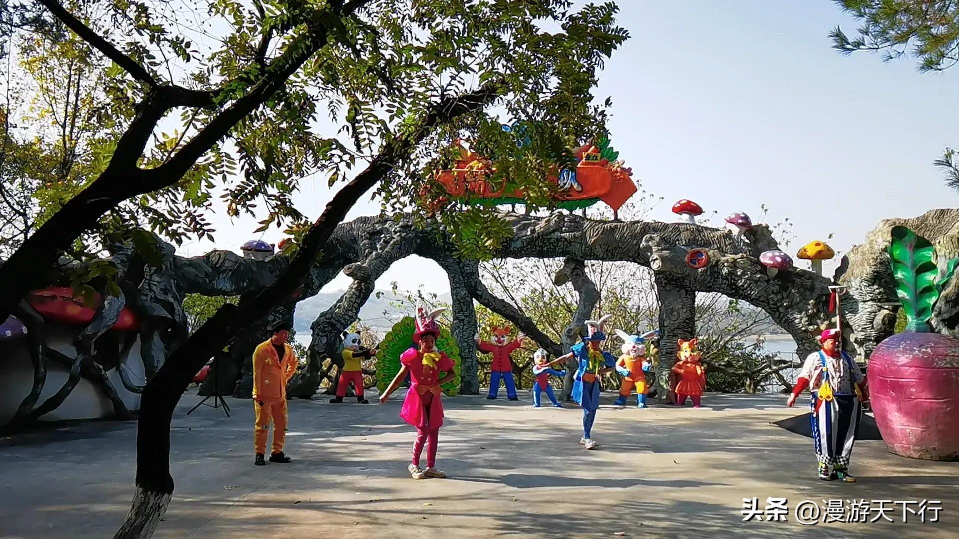 精灵国景点有孔雀、兔子、松鼠等小动物。精灵乐队景点有定时马戏表演,魔术、杂技和小丑表演持续30分钟。只要有游客前来,哪怕是一个游客,表演队都会按时出场演出,很敬业,也让我感动!因为开场时,现场只有我和夫人。