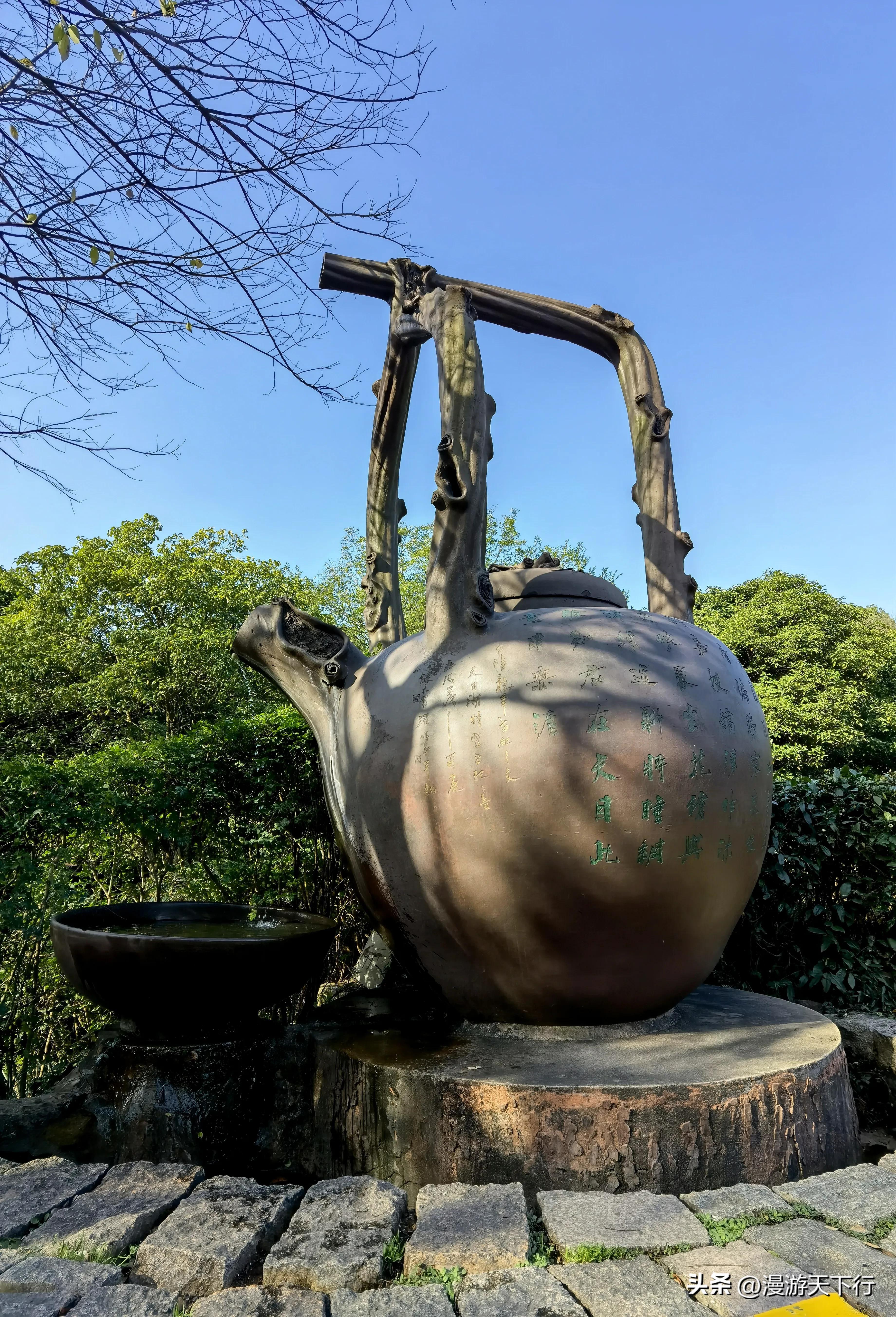 绣球岛是座微型小岛,它通过逍遥桥与茶岛相连,岛上有江南茶村,处处是茶树。岛上有中国第一壶:980公斤重的紫砂壶。