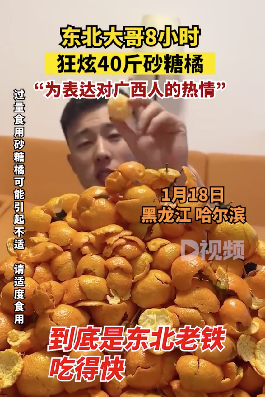 东北大哥8小时狂炫40斤砂糖橘(东北吃货大哥所有视频直播)